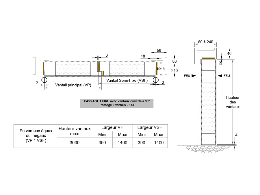 Arrondis en partie centrale - dimension maxi vantaux 2575 x (1400 + 1400) mm