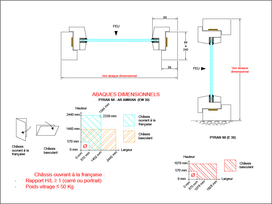 Cloison vitrée (HAUTEUR MAXI 3400 ou 4000 mm / poids maxi vitrage = 175 kg) :