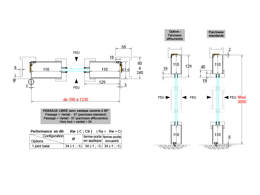 POINT DE FERMETURE OBLIGATOIRE - Rw (C ; Ctr) = 34 (-1 ; -1) dB