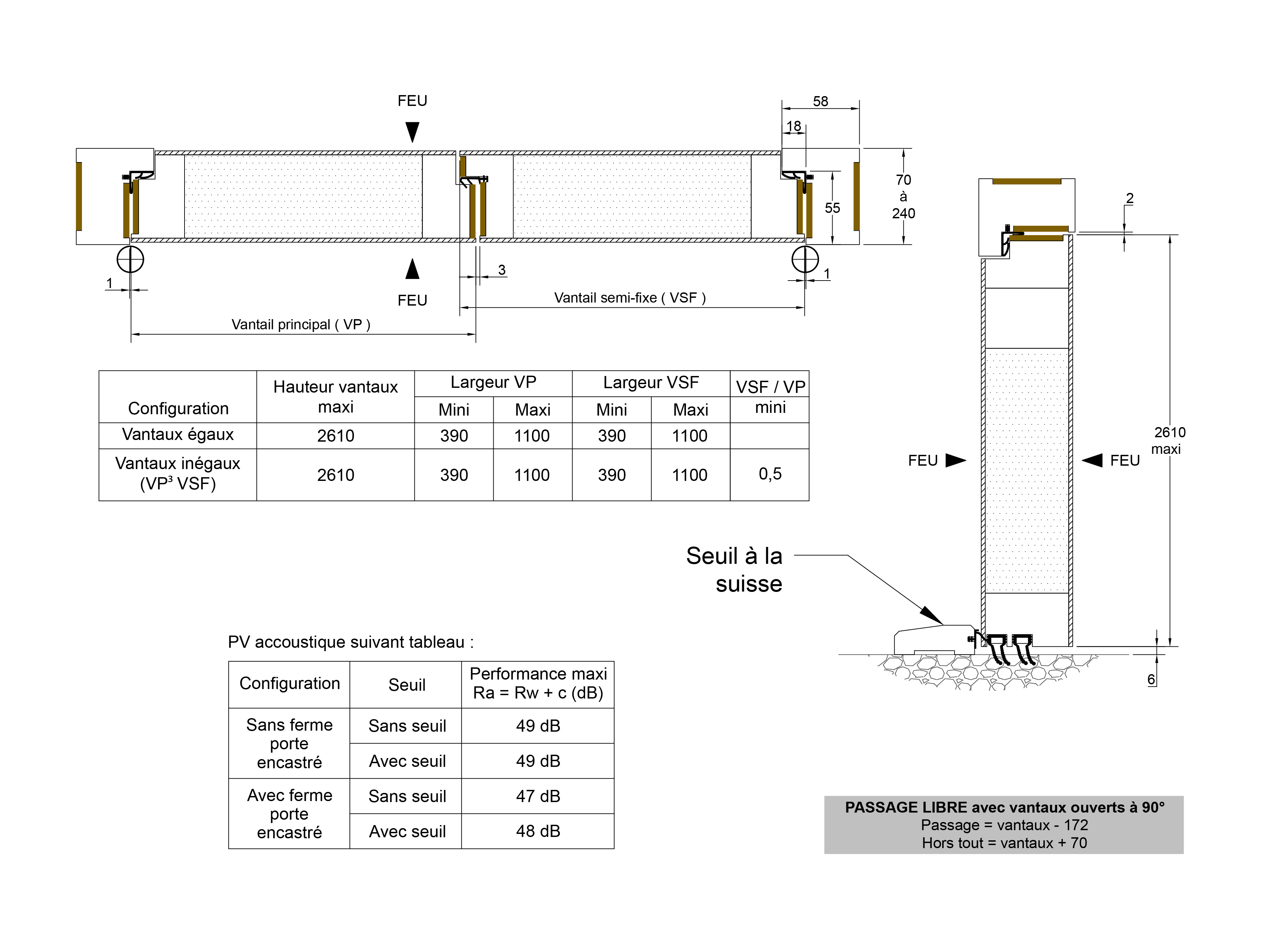 CROUZI FEU ISOPLUS / TENTURE 2V EI60 - Acoustique 49 dB