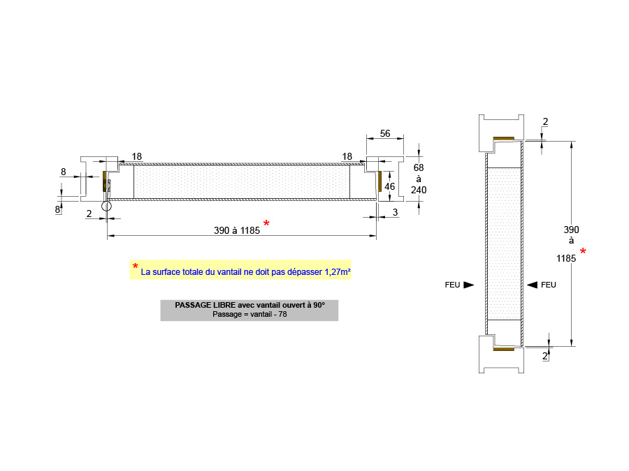Joint de confort dans l'huisserie (optionnel) - feuillure dans l'huisserie passe à 50 x 18 mm