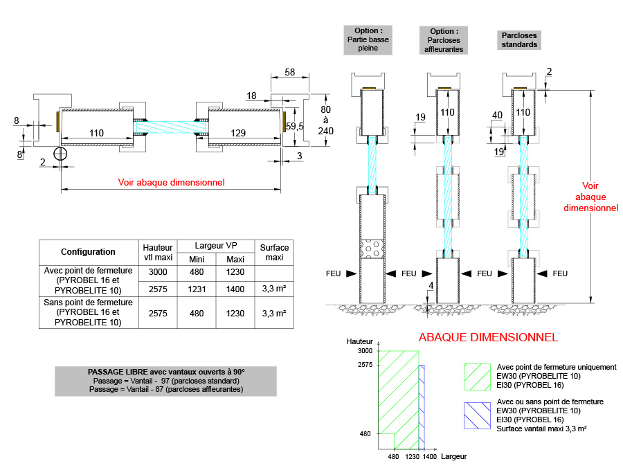ISEO : STYL'BARR - dimension maxi vantail 2575 x 1400 mm - ferme-porte obligatoire
