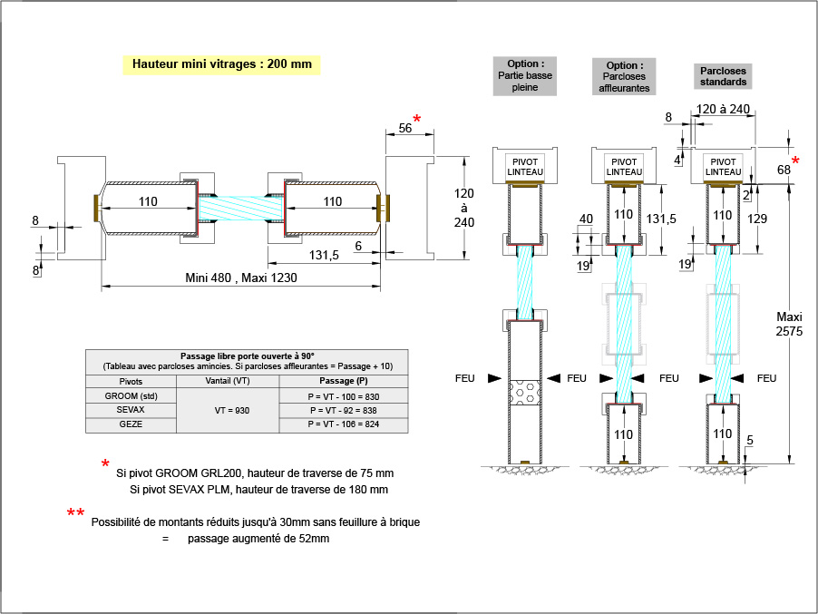 PYROBEL 25 (EI60) - Le vantail peut être équipé de 1 à 3 vitrages