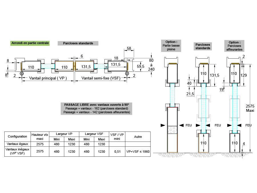 Applique : dimension max vantaux 2575 x (1230 + 1230) mm - ferme-porte et serrure obligatoire